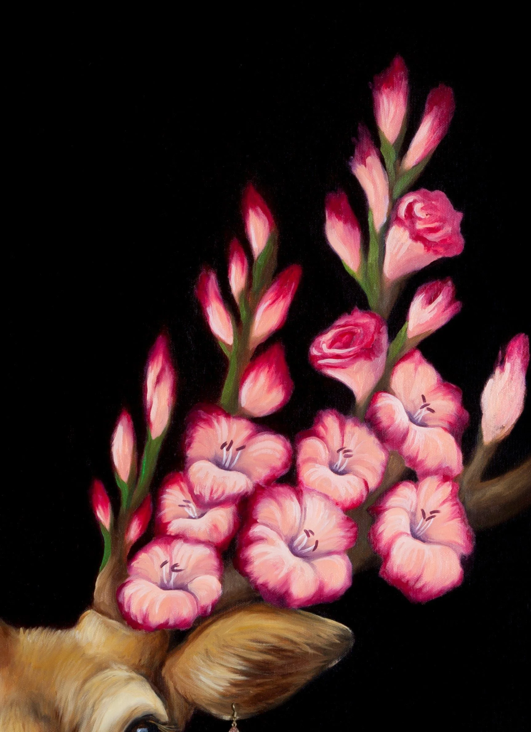 This limited edition high resolution giclee artist print of the oil painting “Flower for my Deer", is reproduced using state of the art print technology and long life